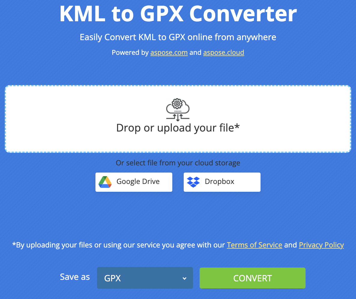 - Laden Sie den kostenlosen Online-KML zu GPX-Konverter von jedem Webbrowser aus.