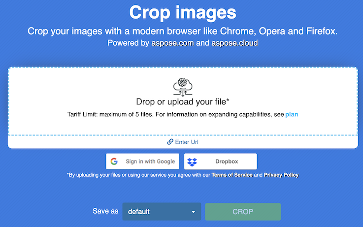 - Cargue la herramienta de recorte de imágenes en línea ingresando la URL en un navegador web.