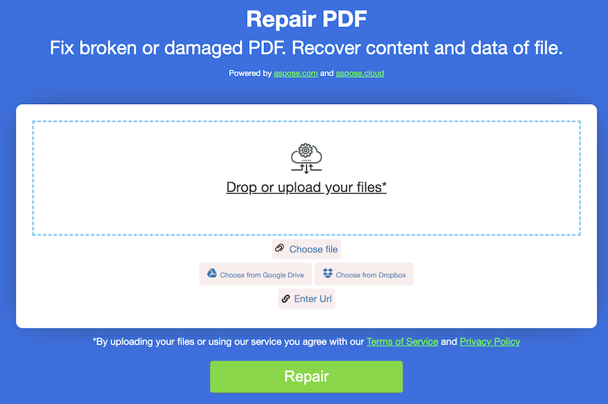 Esta herramienta gratuita en línea para reparar PDF está diseñada para reparar de manera eficiente archivos PDF dañados y recuperar los datos dentro de ellos. Ya sea que su archivo PDF tenga problemas menores o corrupción severa, este reparador de PDF puede ayudar a restaurarlo a un estado utilizable.