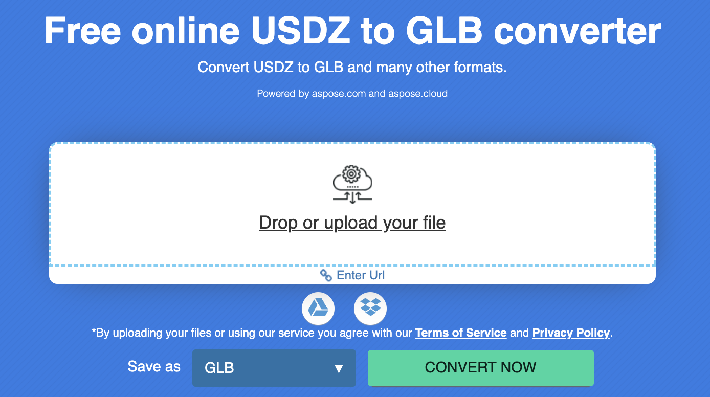 - Fai clic sul pulsante Converti ora per convertire USDZ in GLB online.