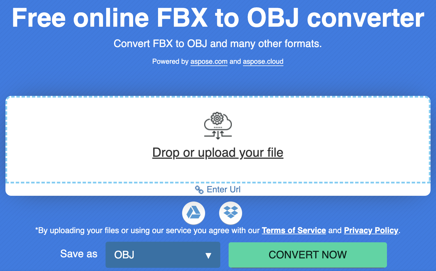 此 在线免费 FBX 到 OBJ 转换器 让您只需点击几下即可转换文件。您无需注册或使用任何付款方式。